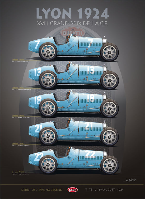 The company was founded in 1909 in Molsheim, Alsace by the Italian-born industrial designer Ettore Bugatti. The first true Bugatti 'pur sang' race car was the Type 10 in 1910. This evolved into the Type 13 'Brescia' model and was the car driven to second place in the 1911 French Grand Prix. After the First World War, production on the type 13 continued. Bugatti enjoyed huge success in racing with the highlight being the Type 35 and its variants - first introduced in 1924 at Lyon.